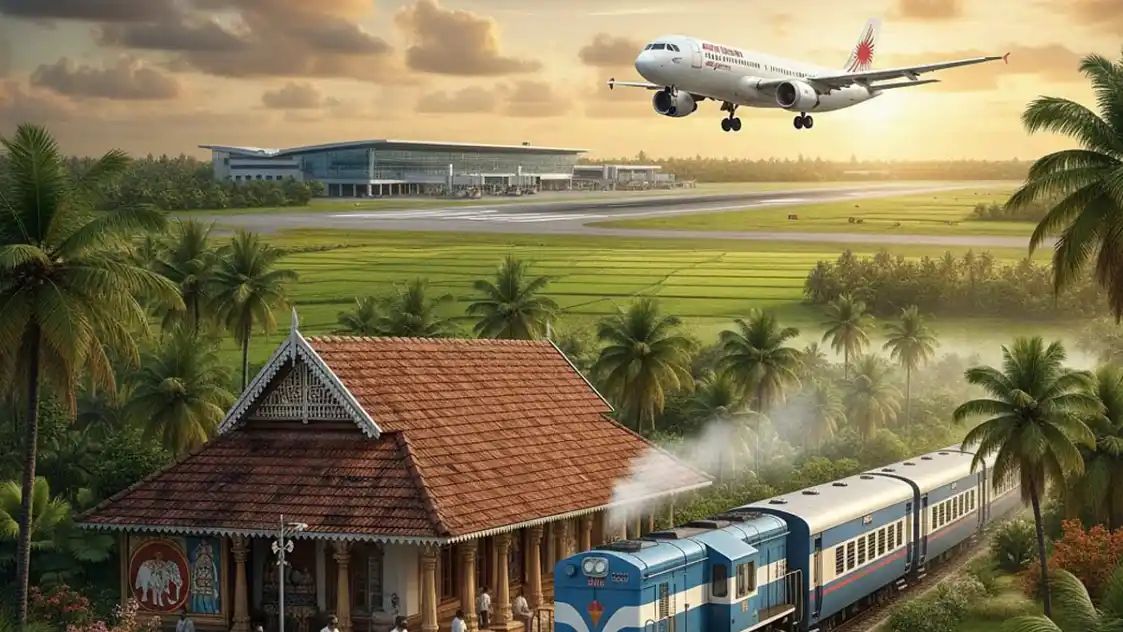 വിമാനത്താവളത്തിന് ഒന്നര കിലോമീറ്റർ മാത്രം അകലെ കൂടി നിലവില്‍ റെയില്‍ പാത കടന്നുപോകുന്നുണ്ട്. ഇവിടെ റെയില്‍വേ സ്റ്റേഷൻ നിർമിച്ച്‌ വന്ദേ ഭാരത് അടക്കമുള്ള ട്രെയിനുകള്‍ക്ക് സ്റ്റോപ്പ് അനുവദിക്കുന്ന രീതിയിലുള്ള പദ്ധതിയാണ് കേന്ദ്ര സർക്കാർ വിഭാവനം ചെയ്യുന്നത്.