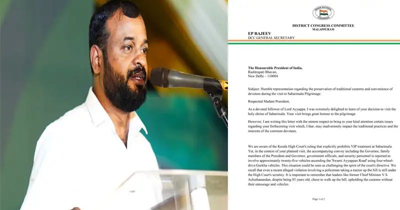 മുന്കാലങ്ങളിലെ സന്ദര്ശന ശ്രമങ്ങളും കത്തില് ഇ.പി. രാജീവ് ഓര്മ്മിപ്പിച്ചു. മുന് പ്രധാനമന്ത്രി ഇന്ദിരാഗാന്ധി ശബരിമല സന്ദര്ശിക്കാന് ആഗ്രഹം പ്രകടിപ്പിച്ചപ്പോള്, ‘ആചാര ലംഘനം’ ആരോപിച്ച് ബി.ജെ.പി. നേതാവ് കുമ്മനം രാജശേഖരന്റെ നേതൃത്വത്തില് ശക്തമായ സമരം നടത്തിയ ചരിത്രം കത്തില് എടുത്തുപറയുന്നുണ്ട്. ഭരണഘടനാ പദവിയിലുള്ള ഒരാള് ആചാരങ്ങളെ മാനിക്കാതെ ഇത്തരം സൗകര്യങ്ങള് ഉപയോഗിക്കുന്നത് ഇരട്ടത്താപ്പാണെന്നാണ് ആരോപണം.