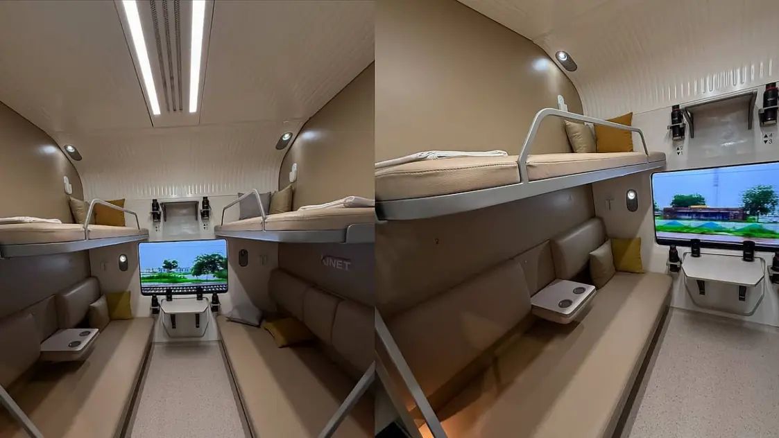 ന്യൂഡല്ഹിയില് നടന്ന 16-ാമത് അന്താരാഷ്ട്ര റെയില്വേ എക്സിബിഷനില് ഇന്തോ-റഷ്യൻ സംയുക്ത സംരംഭമായ കൈനെറ്റ് റെയില്വേ സൊല്യൂഷൻസ്, വന്ദേ ഭാരത് എക്സ്പ്രസിൻ്റെ ഫസ്റ്റ് എസി കോച്ചിന്റെ മോഡല് പ്രദർശിപ്പിച്ചു. ആധുനികവും, സൗകര്യപ്രദവും യാത്രക്കാർക്ക് അനുയോജ്യവുമായാണ് പുതിയ വന്ദേ ഭാരതിന്റെ സ്ലീപ്പറിൻ്റെ രൂപകല്പ്പന. ഇതിൻ്റെ ആദ്യ ദൃശ്യങ്ങള് സോഷ്യല് മീഡിയയില് പങ്കുവെച്ചിരിക്കുകയാണ് കോണ്ടൻ്റ് ക്രിയേറ്ററായ അക്ഷയ് മല്ഹോത്ര.